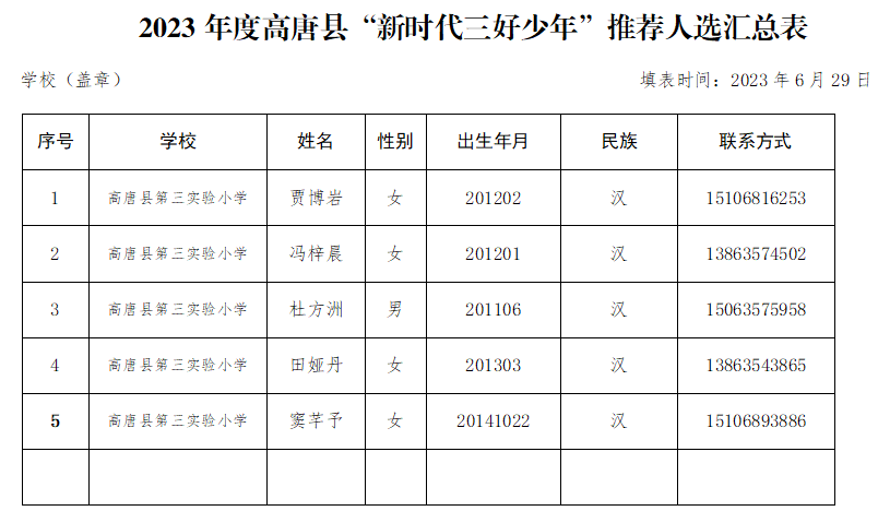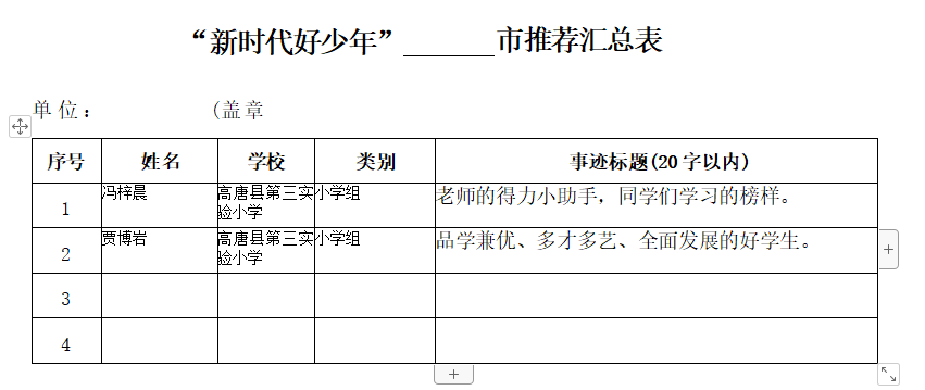 附件四:2023年度“新时代好少年”推荐人选汇总表