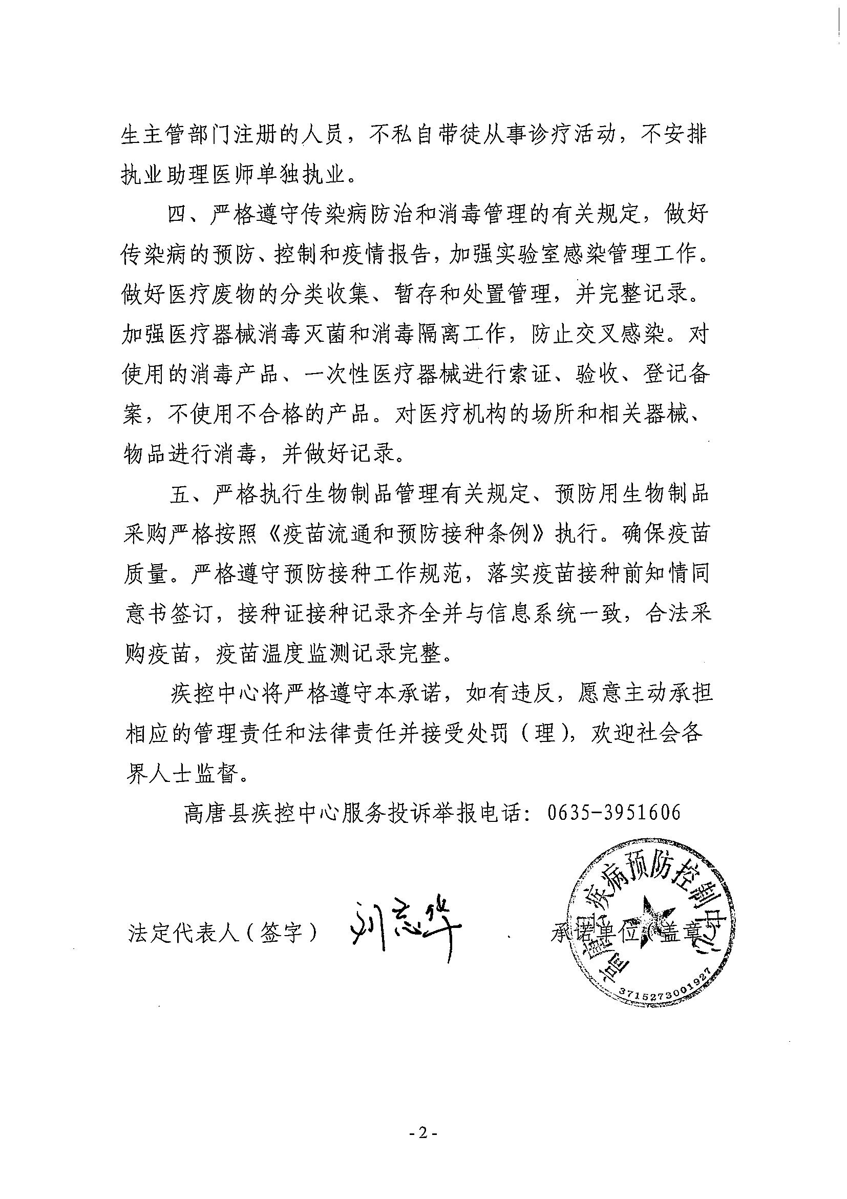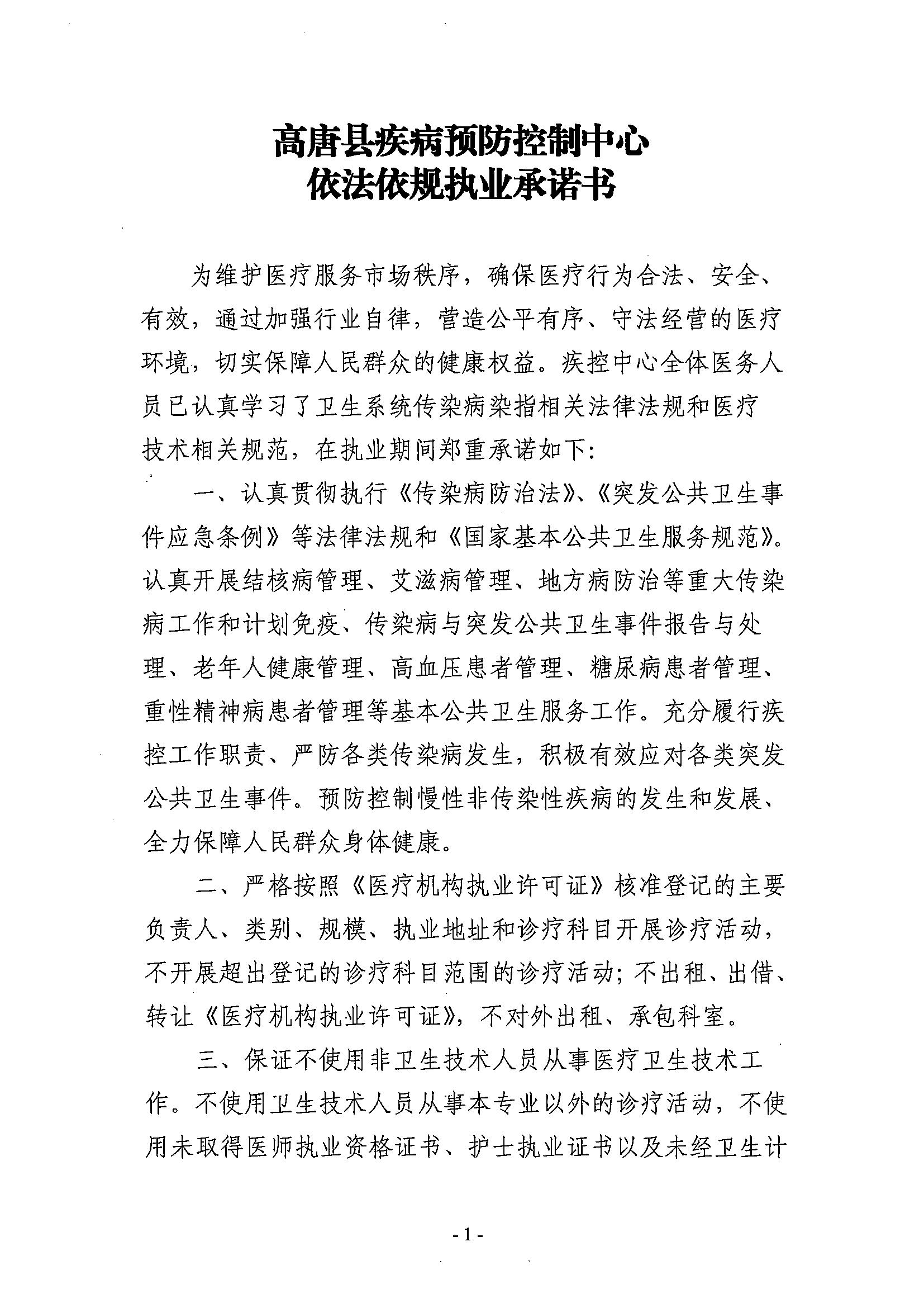 高唐县疾病预防控制中心依法执业承诺书