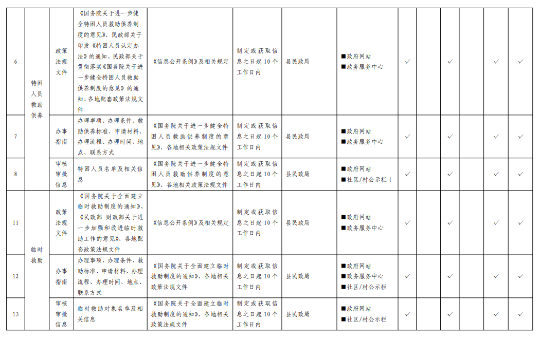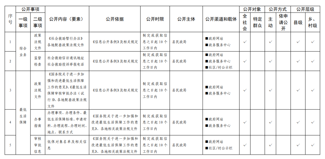 高唐县社会救助领域基层政务公开标准目录